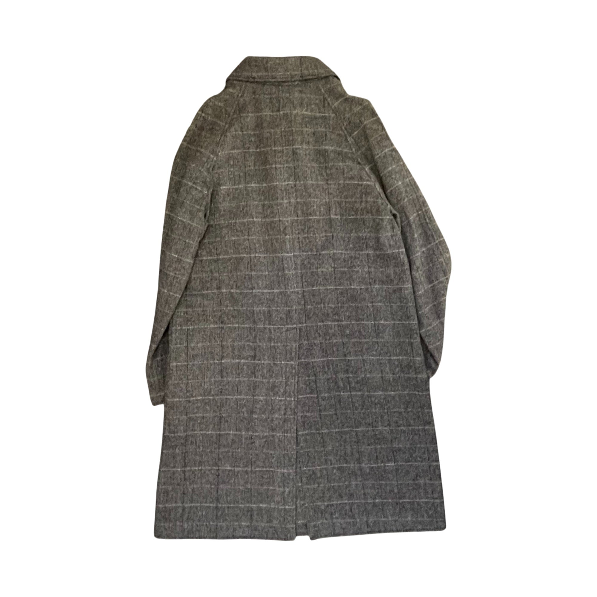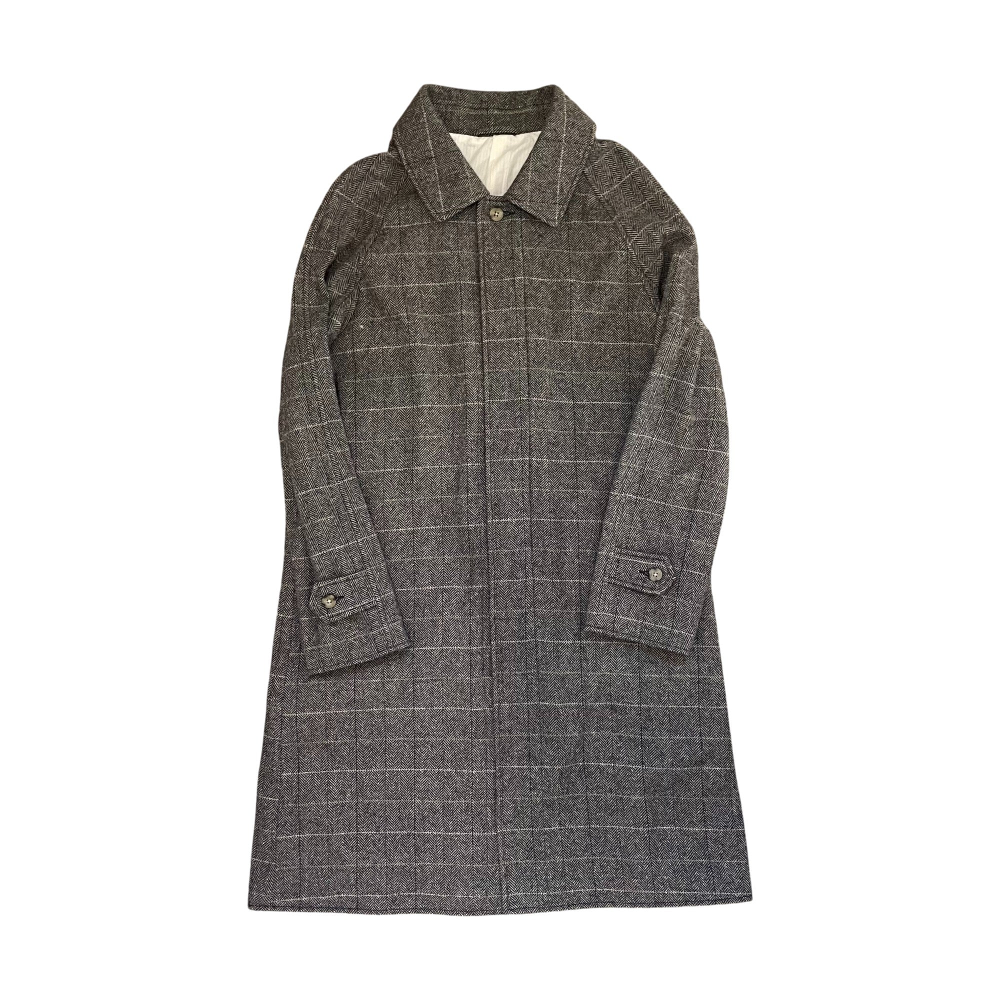 シンプルなバルマカーンコートデザインをベース。ラグランスリーブに比翼仕立てのフロント。ラグランスリーブが肩のラインにゆるやかに沿うので、サイズを大き目に着るお父さんおさがりコート風の着こなしもばっちりはまります。