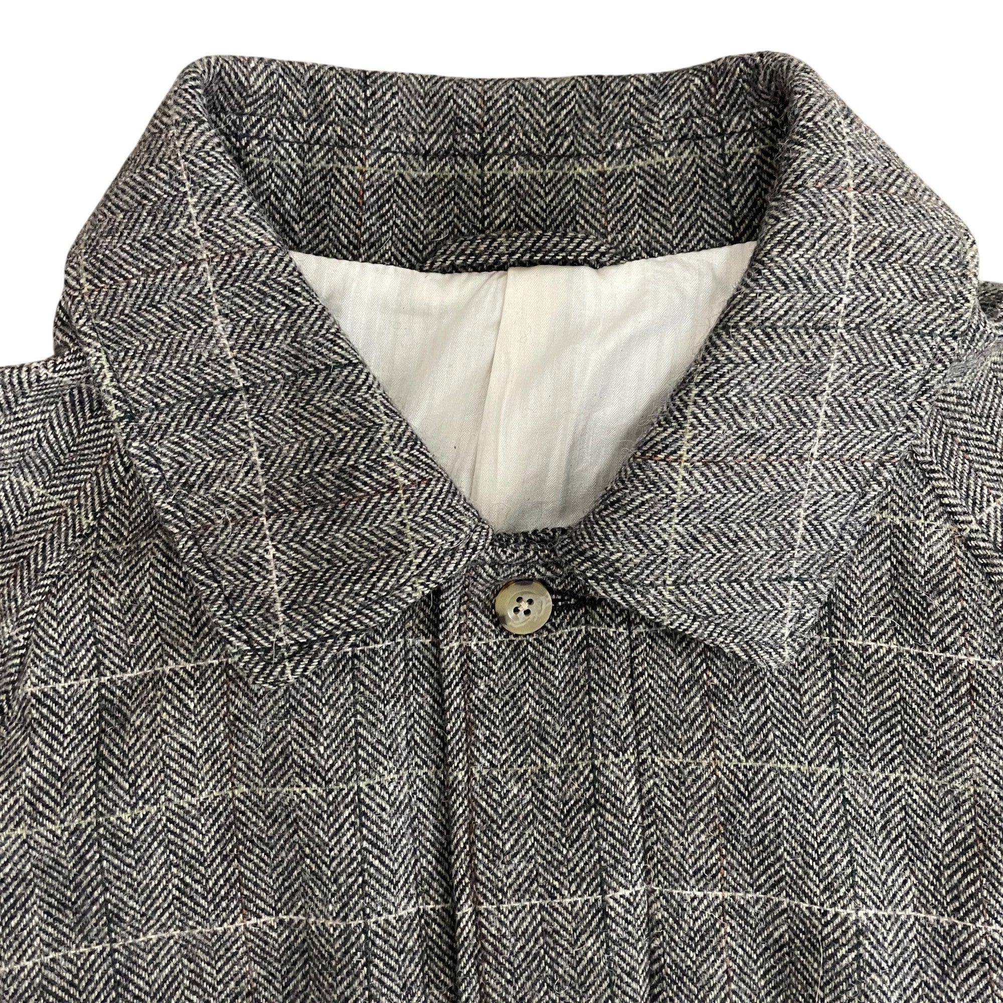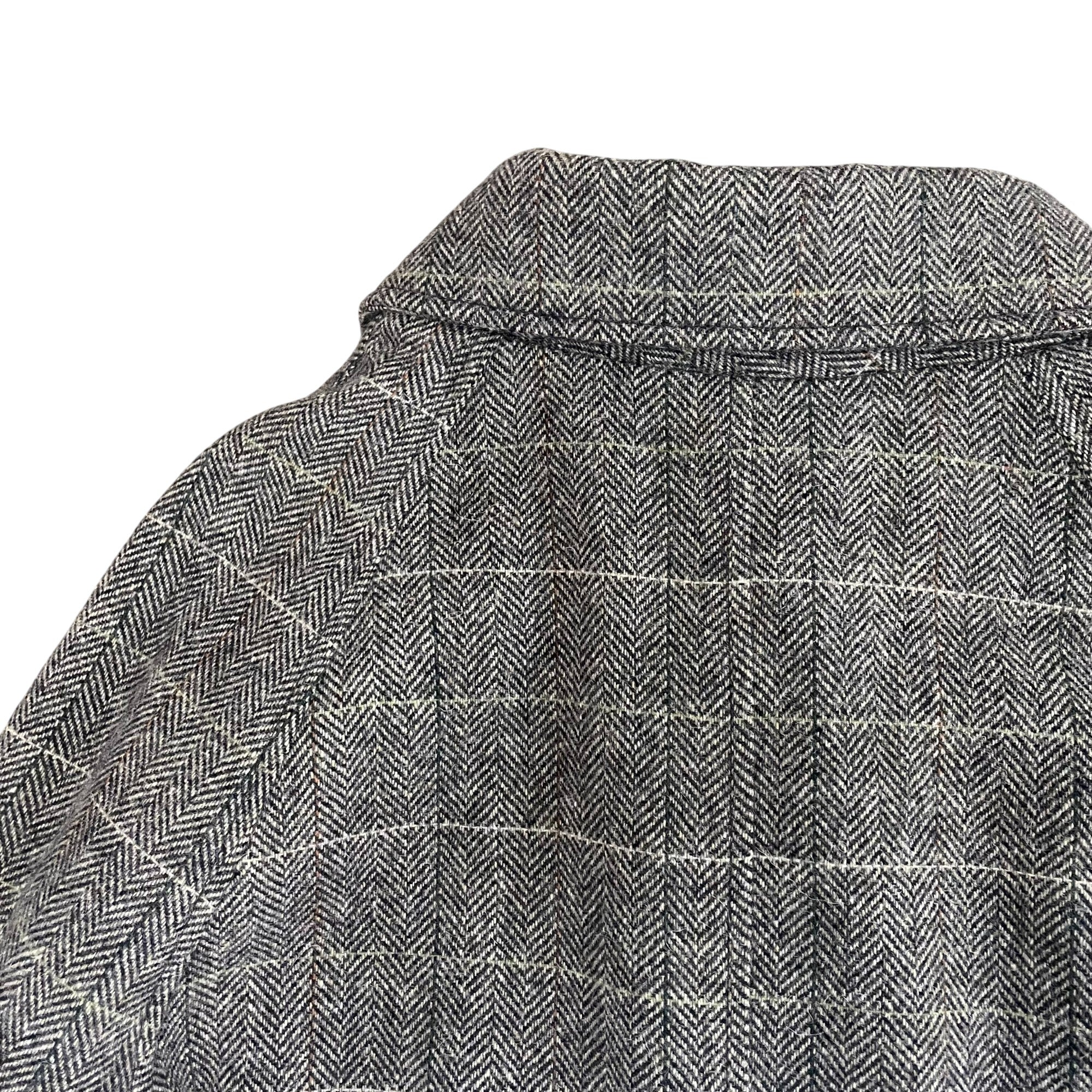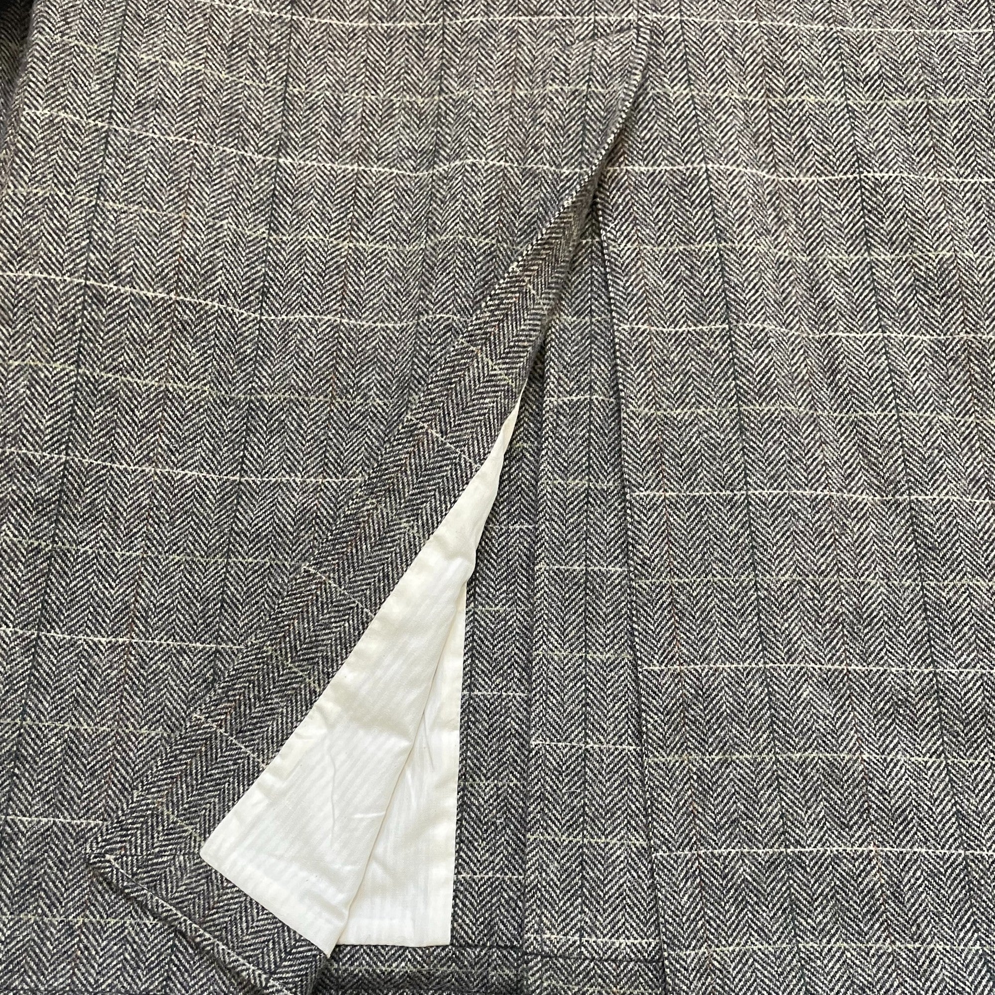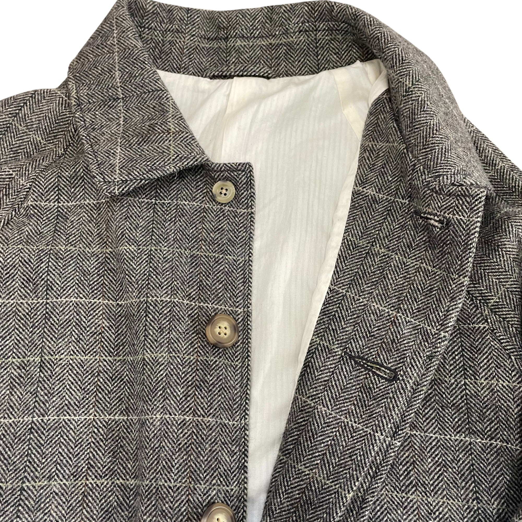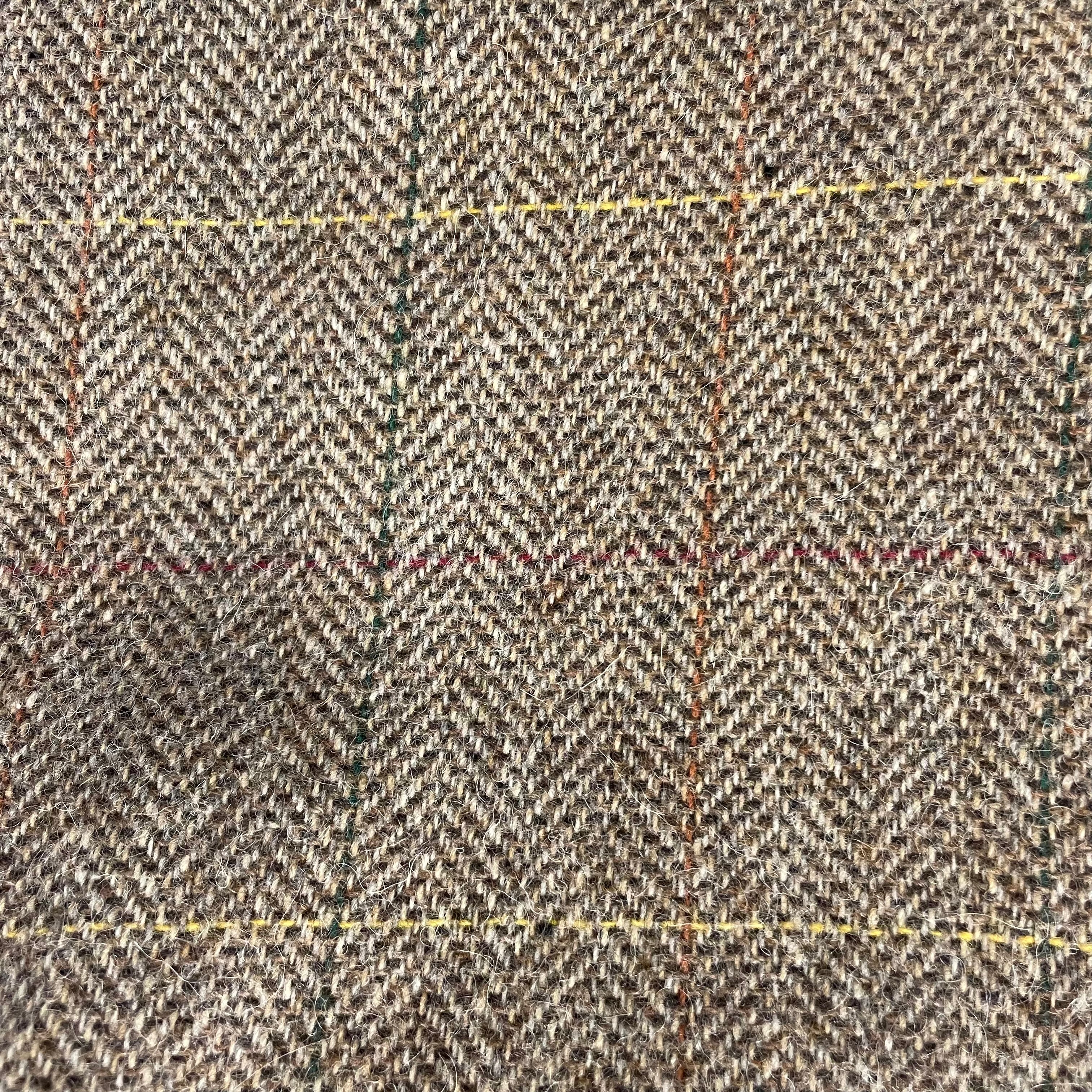 混率はウール79%ナイロン16%アルパカ5%。 この混率で、ウールツィードの堅めで重い印象が、柔らかめの軽さを感じる素材感になっています。